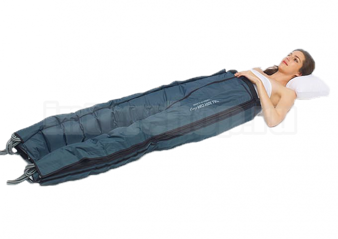 - Комбинезон разделён на 24 секции. Благодаря этому, компрессионный массаж на аппарате Лимфатрон более тщательно и результативно прорабатывает проблемные зоны.