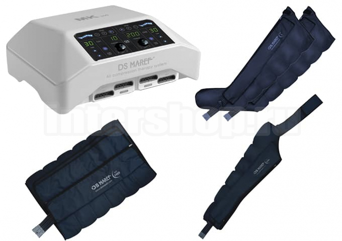 Для удобства оснащён кнопкой экстренного отключения. Стильный и удобный сенсорный дисплей позволяет без затруднений установить желаемый режим, время и давление. Также можно управлять работой каждой из шести камер. Есть возможно подключить одновременно 4 манжеты.
