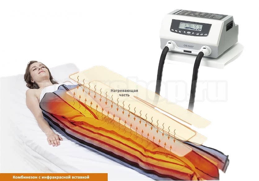 Комбинезон с инфракрасным прогревом работает от сети. Инфрарот на липучках присоединяется к комбинезону для прессотерапии Doctor life.