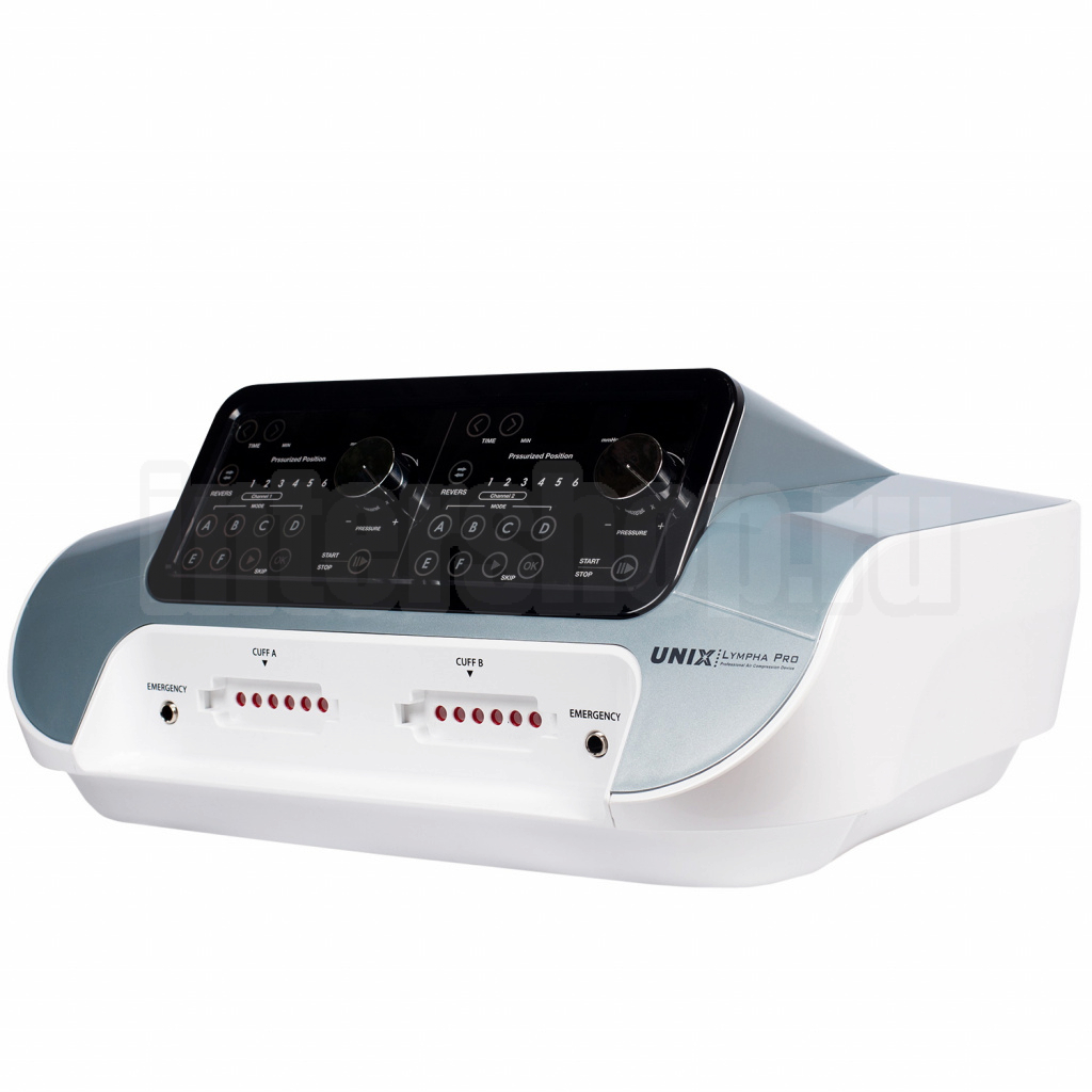 Unix Lympha Pro (Юникс Лимфа Про) — профессиональный 6-и канальный аппарат прессотерапии. Предназначен для длительных, ежедневных нагрузок, обладает простой и понятной схемой управления и всем, наиболее востребованным, функционалом.